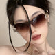 Retro Rimless Glasses, Gradient Lens Wrap Around Fashion Sun Shades, Cycling Beach Party Eyewear, For Women